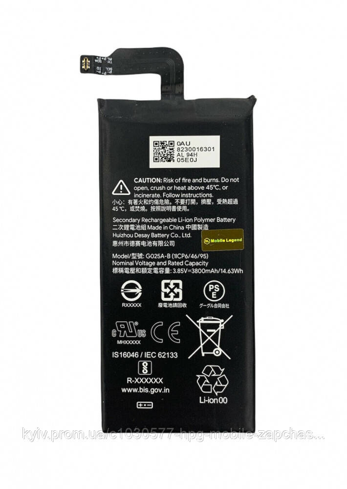 | Маркування акумулятора | G025A-B |